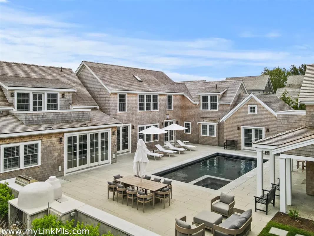 Stunning six bedroom house with attached two bay-garage, one bedroom guest house, and pool/spa in highly sought after Pilgrim Road/Cliff neighborhood. Meticulously designed layout to seamlessly blend the interiors and exteriors and take advantage of the oversized lot that abuts Land Bank with stunning pastoral views. The property features over 9,300 sf of living space spread over well balanced rooms, including the living room with 25' ceiling. Abundant amenities including custom outdoor pizza oven and kitchen, oversized steam room, six sets of washers and dryers, electric car chargers and detailed mill work throughout. Sold turnkey with exceptionally curated furnishings and interior designs. Artistically designed lush and private landscape with gorgeous uplit driveway approach. Very rare offering.