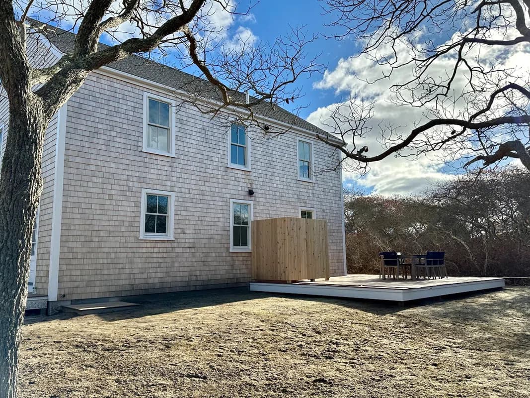 Completely renovated 4-bedroom colonial set on a beautiful wooded lot in Tom Nevers East! New Anderson 400 series windows, all-new interior and exterior doors, and a new kitchen with top-of-the-line appliances are just a few of the many features of this turn-key property. This 1.1-acre parcel abuts 28 acres of Nantucket Land Bank property. The house itself is perfectly poised to take advantage of all of the peace and privacy that the lot and area have to offer. The brand-new large mahogany outdoor deck looks out onto the tree-covered lawn and is perfect for al fresco dining. Tom Nevers East residents enjoy close proximity to South Shore beaches and have use of the community tennis courts.