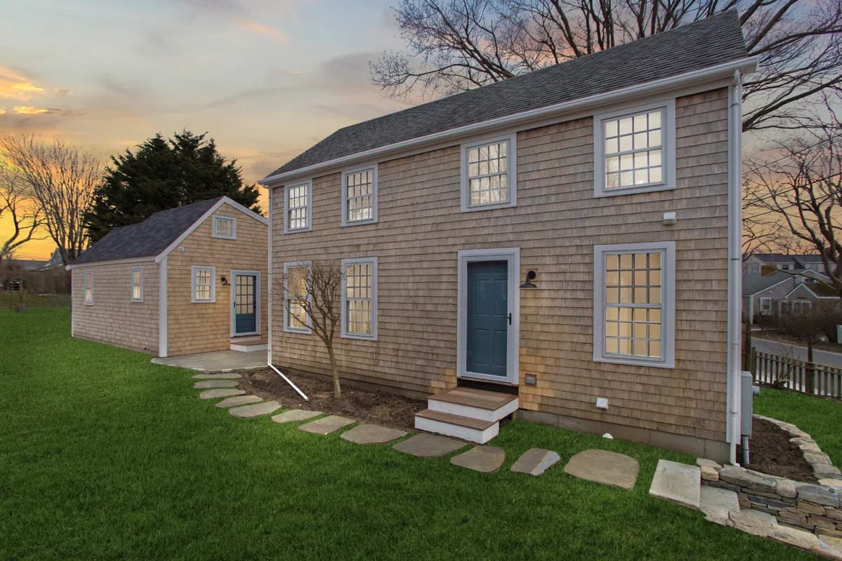 16 Quaker is ideally located on the west side of Town with easy access to historic Downtown Nantucket and pristine island beaches. The property was thoughtfully conceived by Demaio Design Group and is being offered furnished. The property features a 3 bed, 2 ½ bath main house and a 2 bed, 1 bath cottage with full kitchen and laundry. Intelligently designed, both dwellings have open floor plans, clean interiors and seamless transition to a bluestone patio all surrounded by tasteful landscaping.
