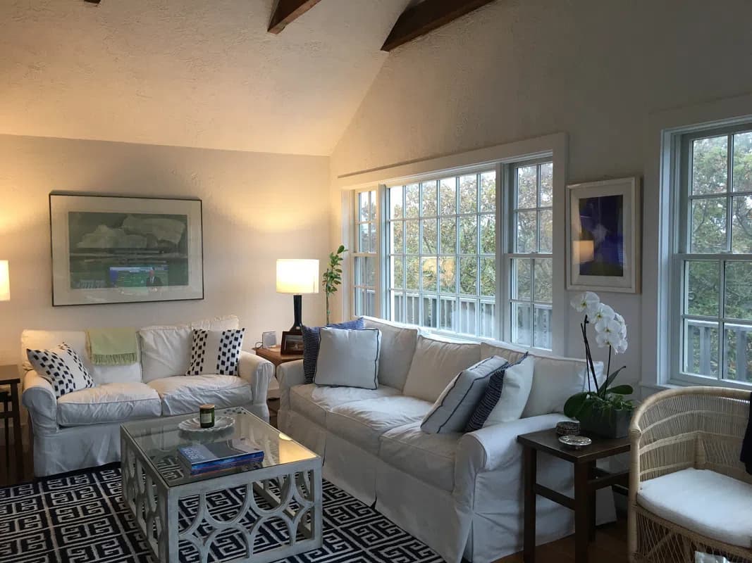 Enjoy this summer retreat, a short stroll (2/10 of a mile) from one of the most beautiful ocean beaches on the island. On the second floor wraparound deck you have peeks of the water and cool ocean breezes. There is a large grass yard as you enter the property, and manicuredShow More