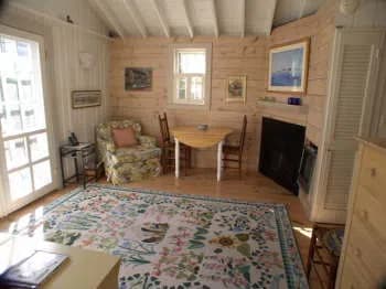 Cheery rose covered in-town cottage, all on one level. Master bedroom with Queen size bed, other room has bunk bed. Well equipped galley kitchen, small living/dining area with french doors to private professionally landscaped garden patio. Attractive interiors and just a shoShow More